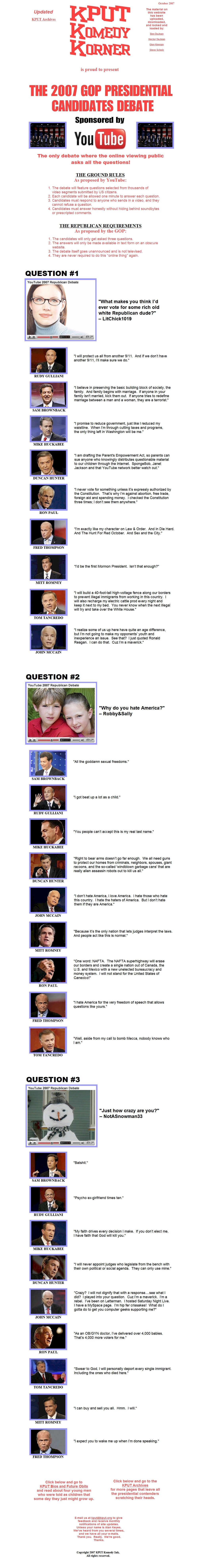KPUT Presents: The 2007 GOP Presidential Candidates Debate On YouTube