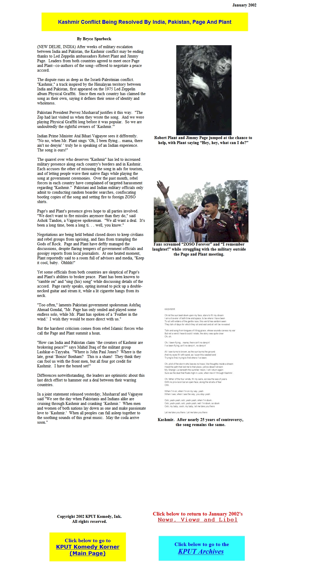Kashmir Conflict Being Resolved By India, Pakistan, Page And Plant